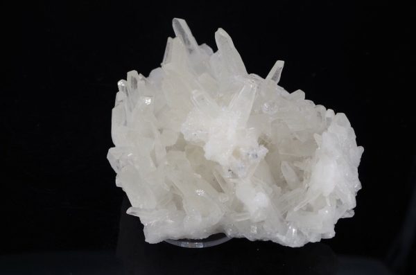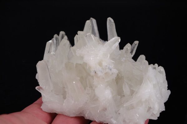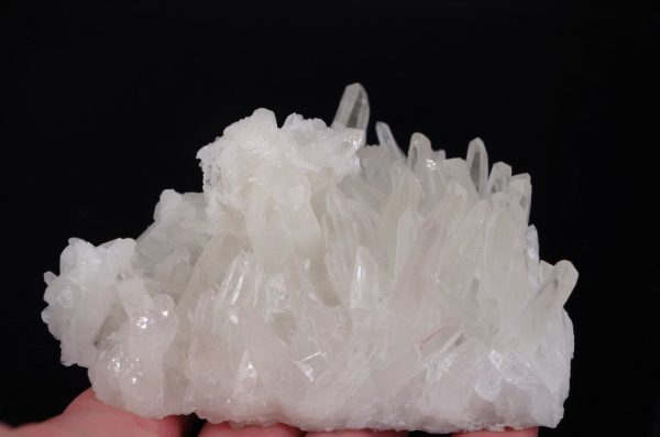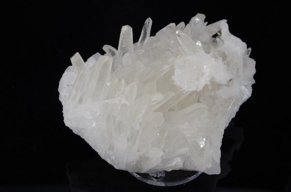 Une recristallisation sur les sommités quasi au centre de la pièce présente un formation d’un second petit groupe de quartz avec de nombreuses petites aiguilles