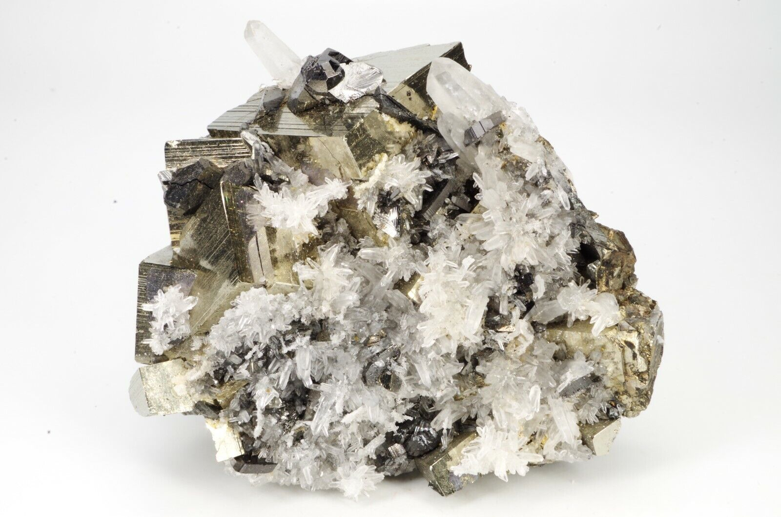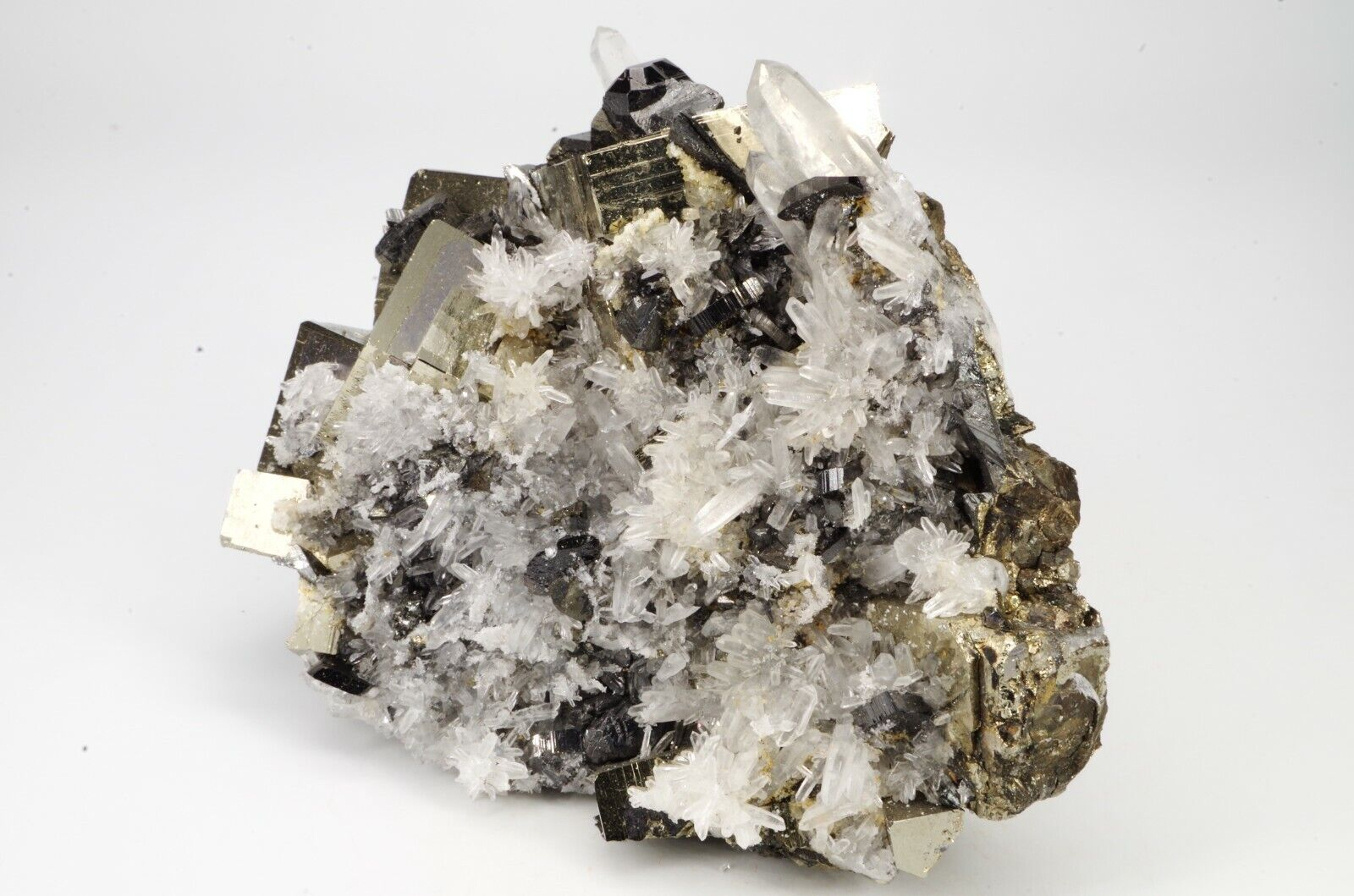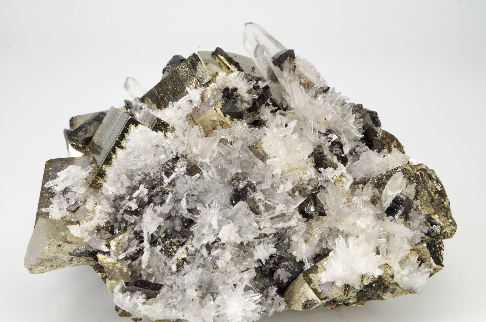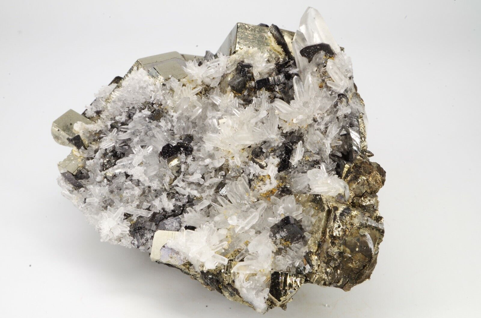 jolie association de quartz , pyrite et sphalérite
