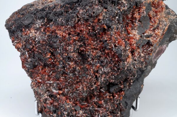 Bien que la couleur typique de la rhodochrosite soit le rose à rouge corail, les spécimens du Gabon peuvent présenter des variations de couleur, allant parfois vers des teintes plus orangées ou brunes, en raison de la présence d’impuretés spécifiques dans les dépôts gabonais.