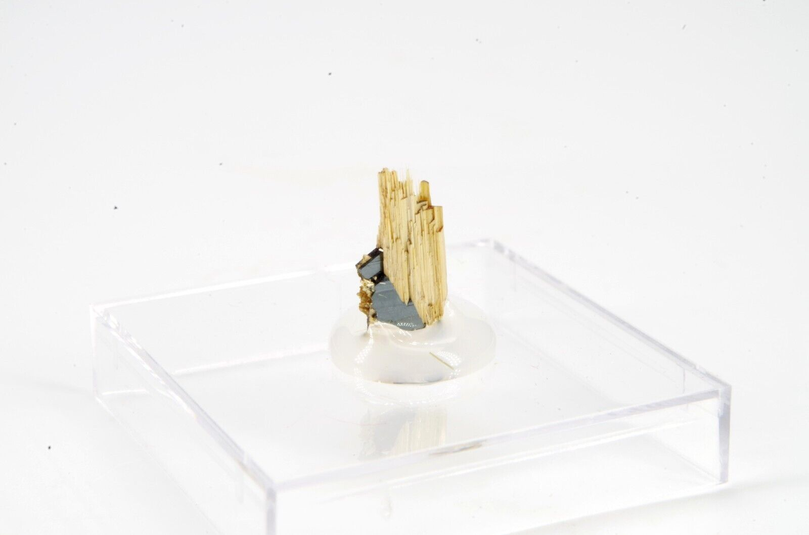 échantillon collé sur socle de dimensions 2.7×2.7cm hauteur : +/- 0.9cm Largeur :+/- 0.6cm