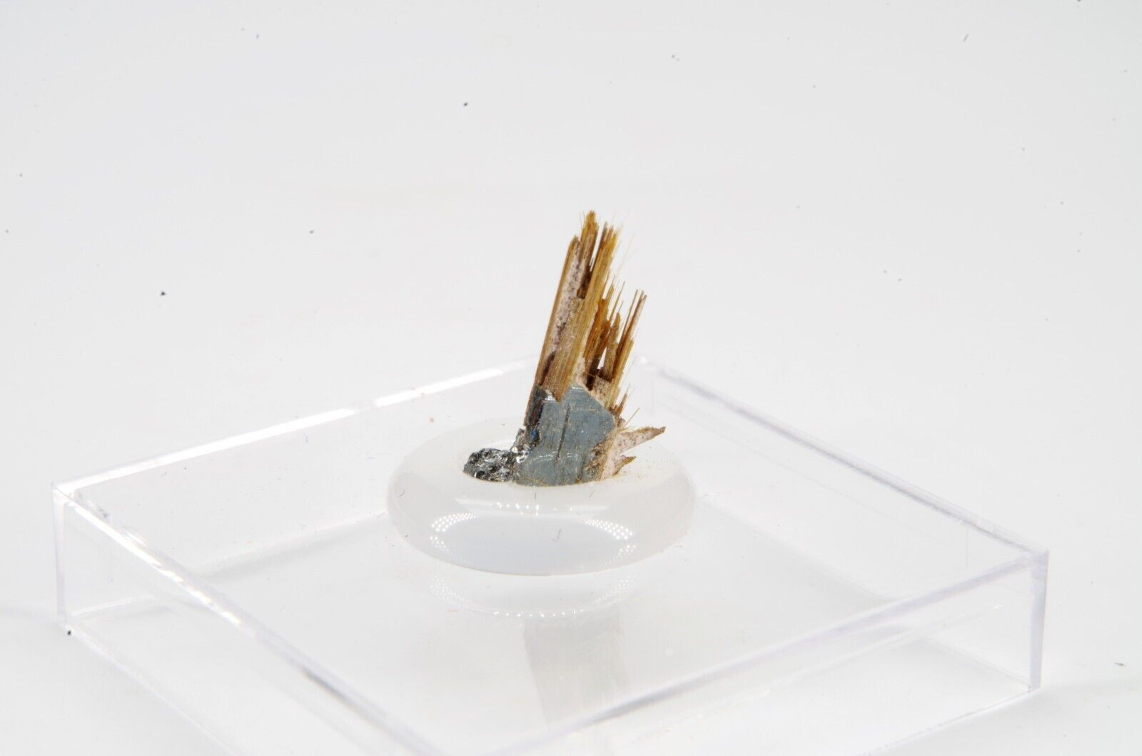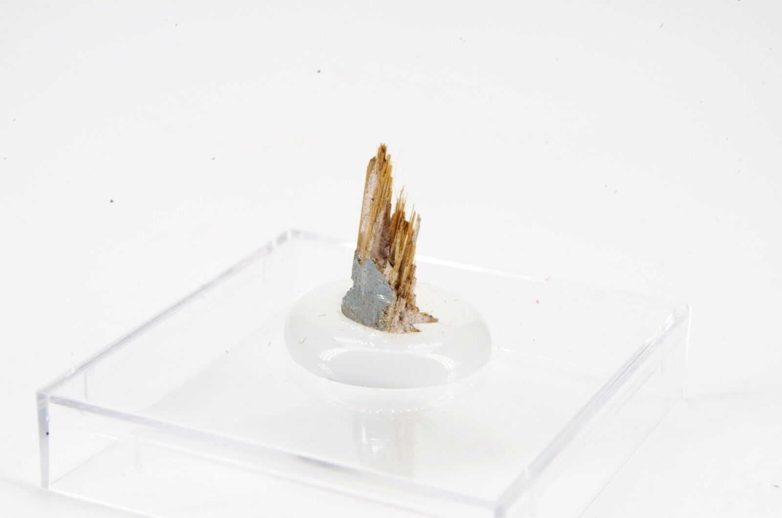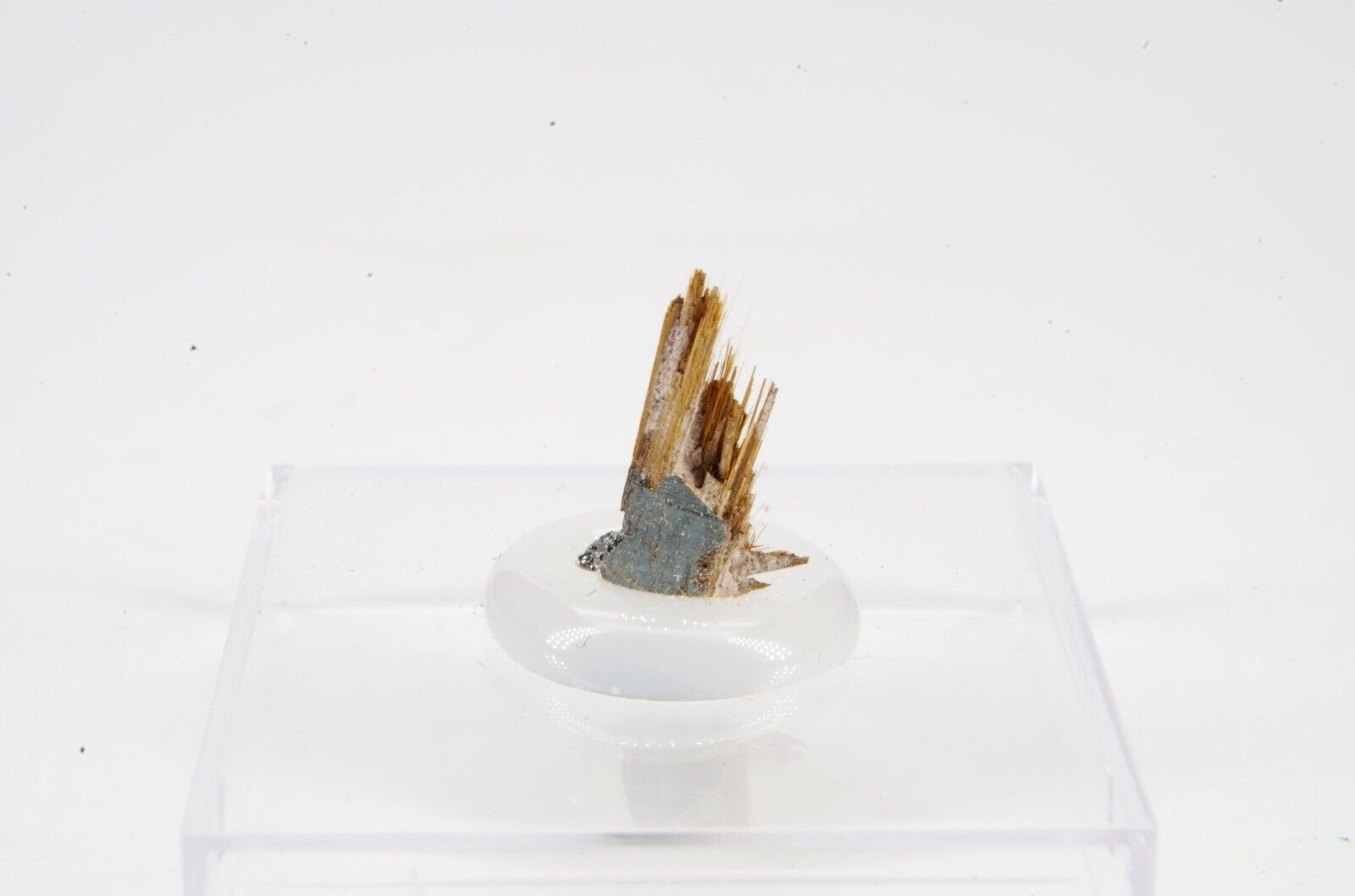 échantillon collé sur socle de dimensions 2.7×2.7cm hauteur : +/- 1.1cm Largeur :+/- 0.6cm