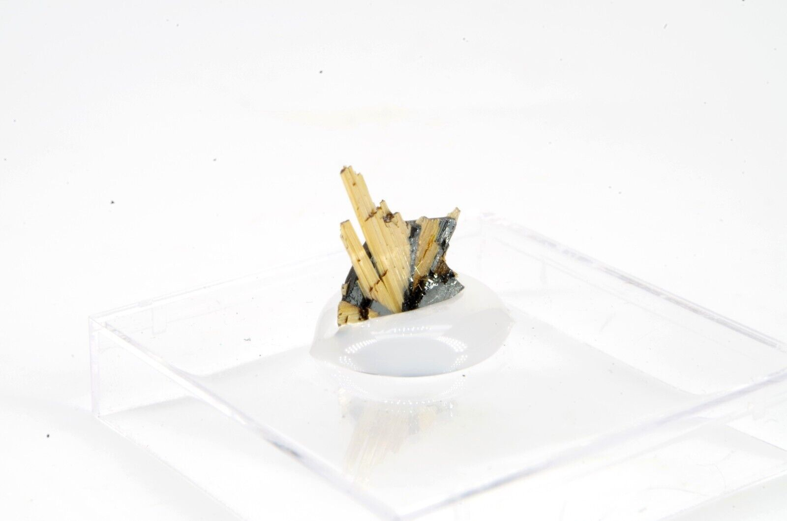 échantillon collé sur socle de dimensions 2.7×2.7cm hauteur : +/- 0.9cm Largeur :+/- 0.7cm