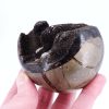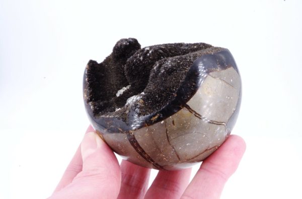 - Vertus Énergétiques : Placé dans une pièce, l’œuf en septaria aide à équilibrer les énergies environnantes tout en ajoutant une touche d’élégance naturelle.