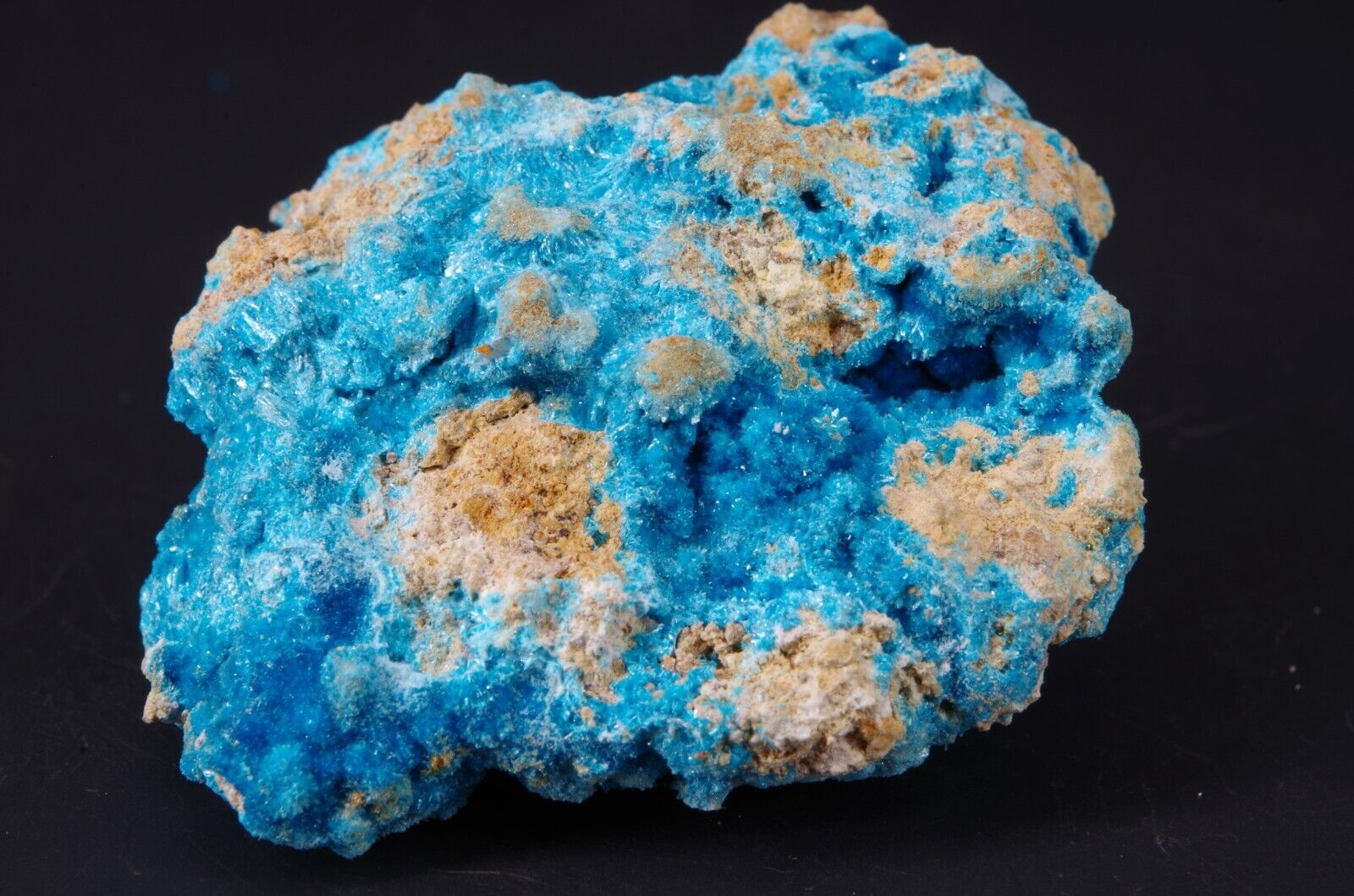 Minéral sulfate hydraté rare de couleur bleu ciel, que l’on trouve souvent comme produit post-exploitation.