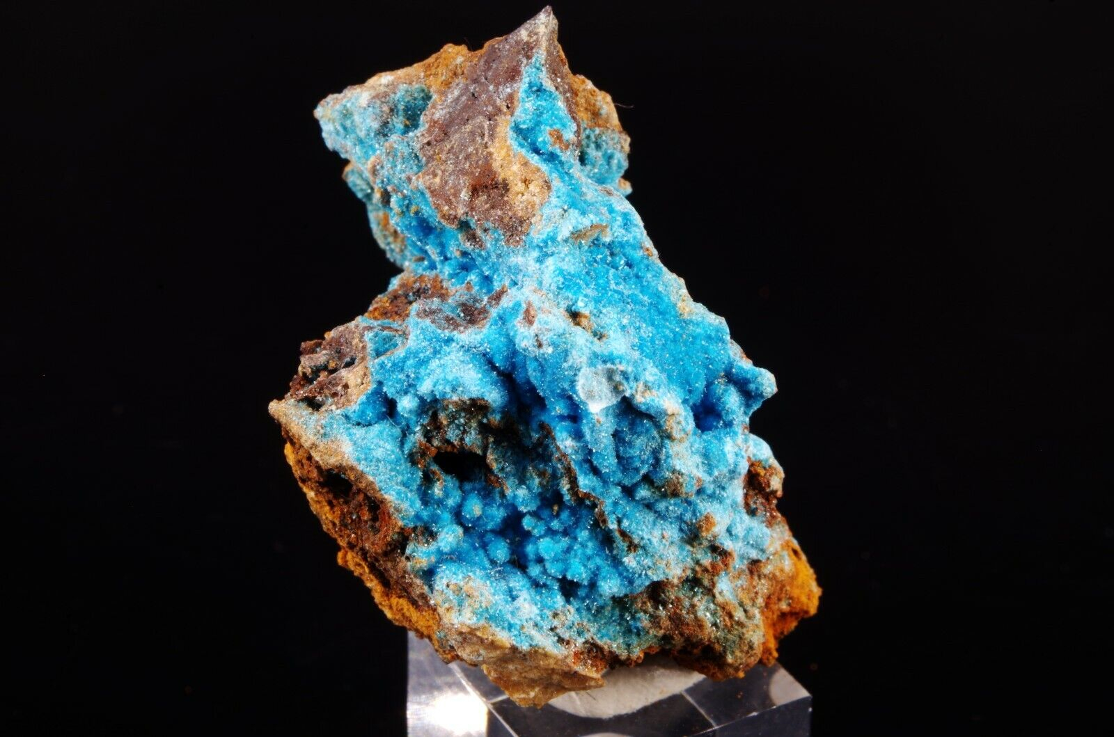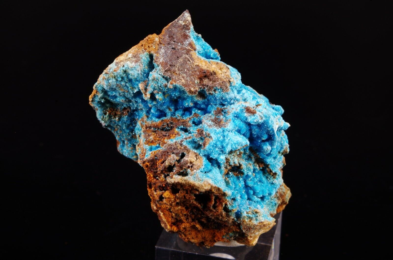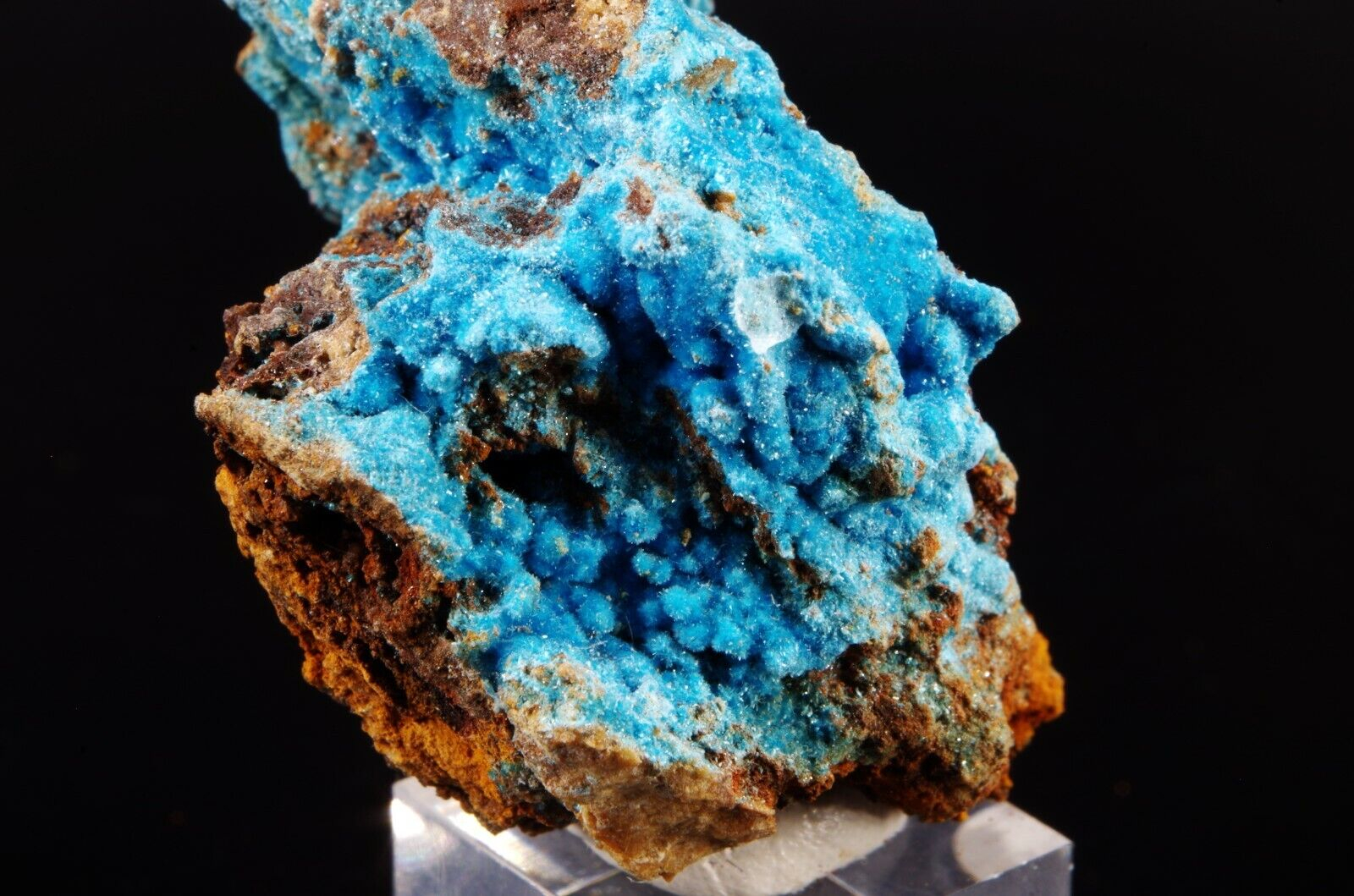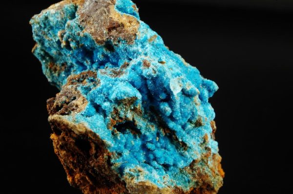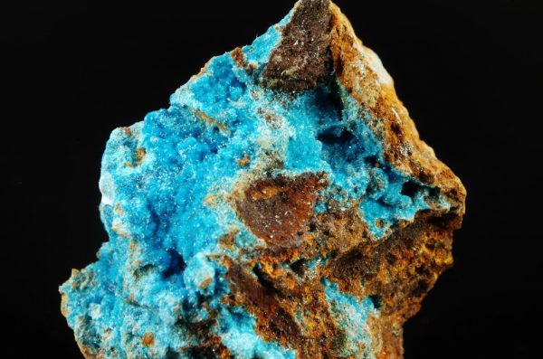 Minéral sulfate hydraté rare de couleur bleu ciel, que l’on trouve souvent comme produit post-exploitation.
