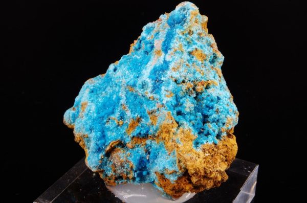 Minéral sulfate hydraté rare de couleur bleu ciel, que l’on trouve souvent comme produit post-exploitation.