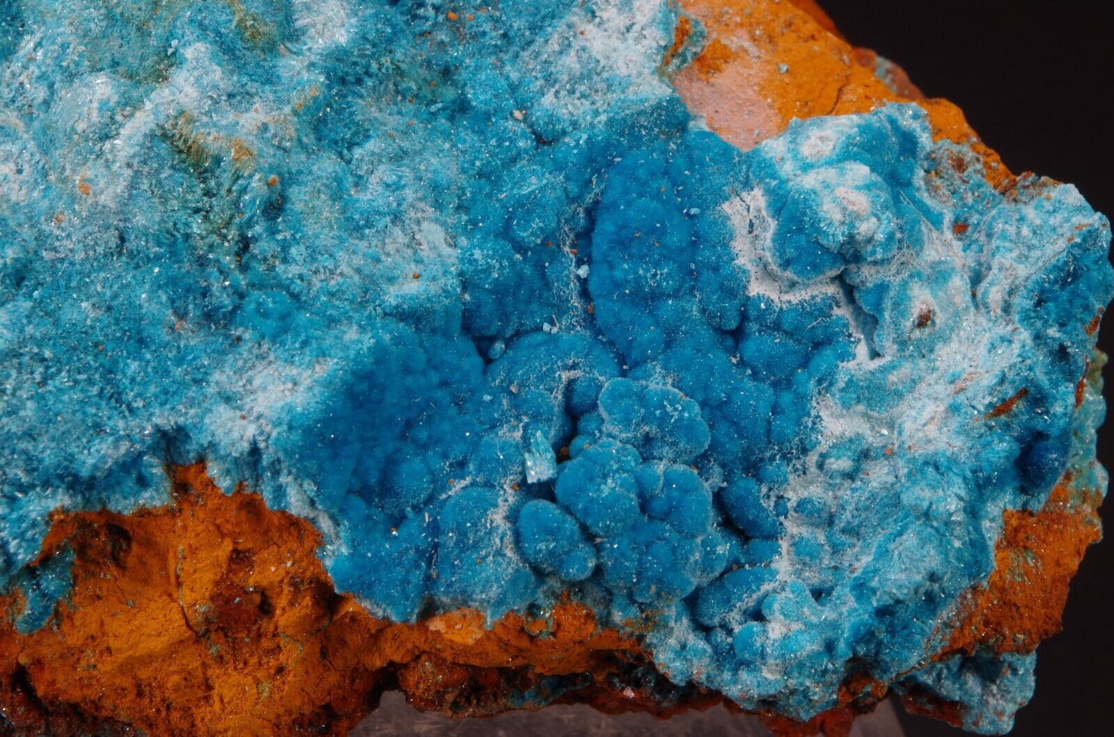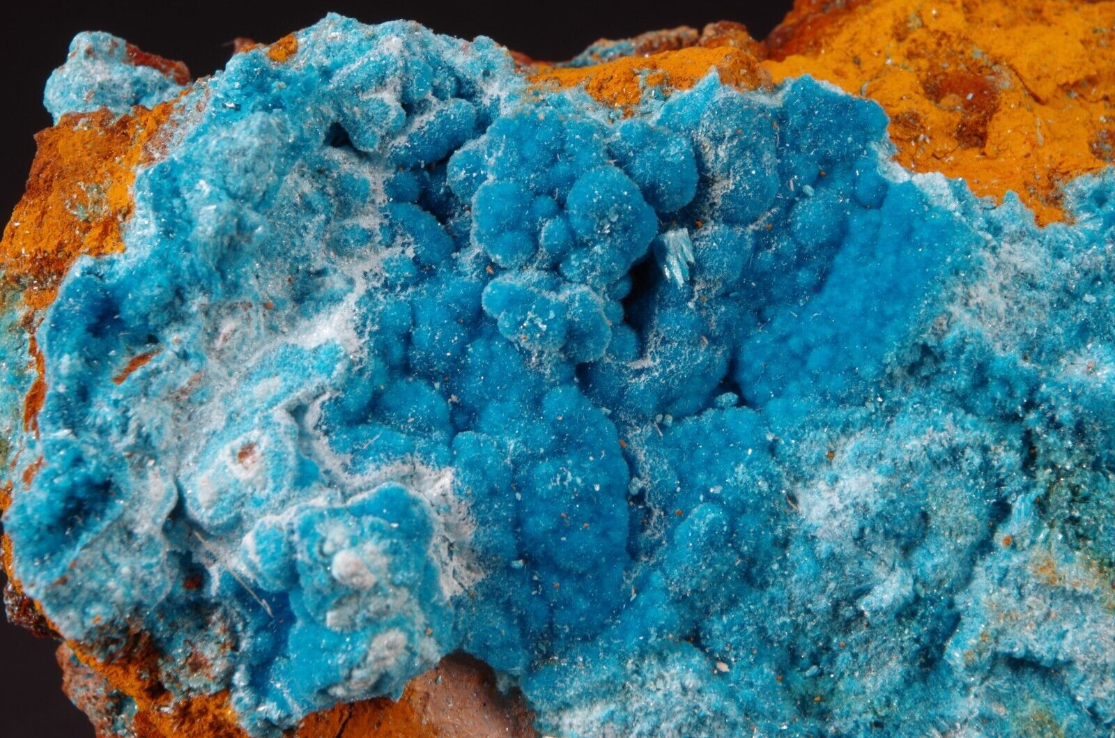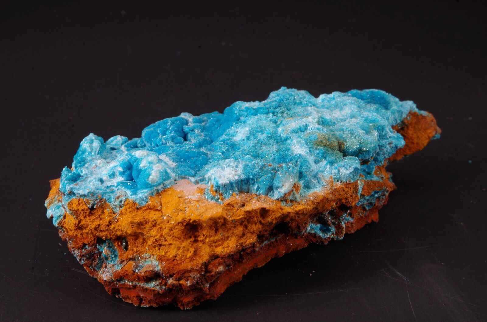 Rare sky-blue coloured hydrated sulfate mineral, often found as a post-mining product.