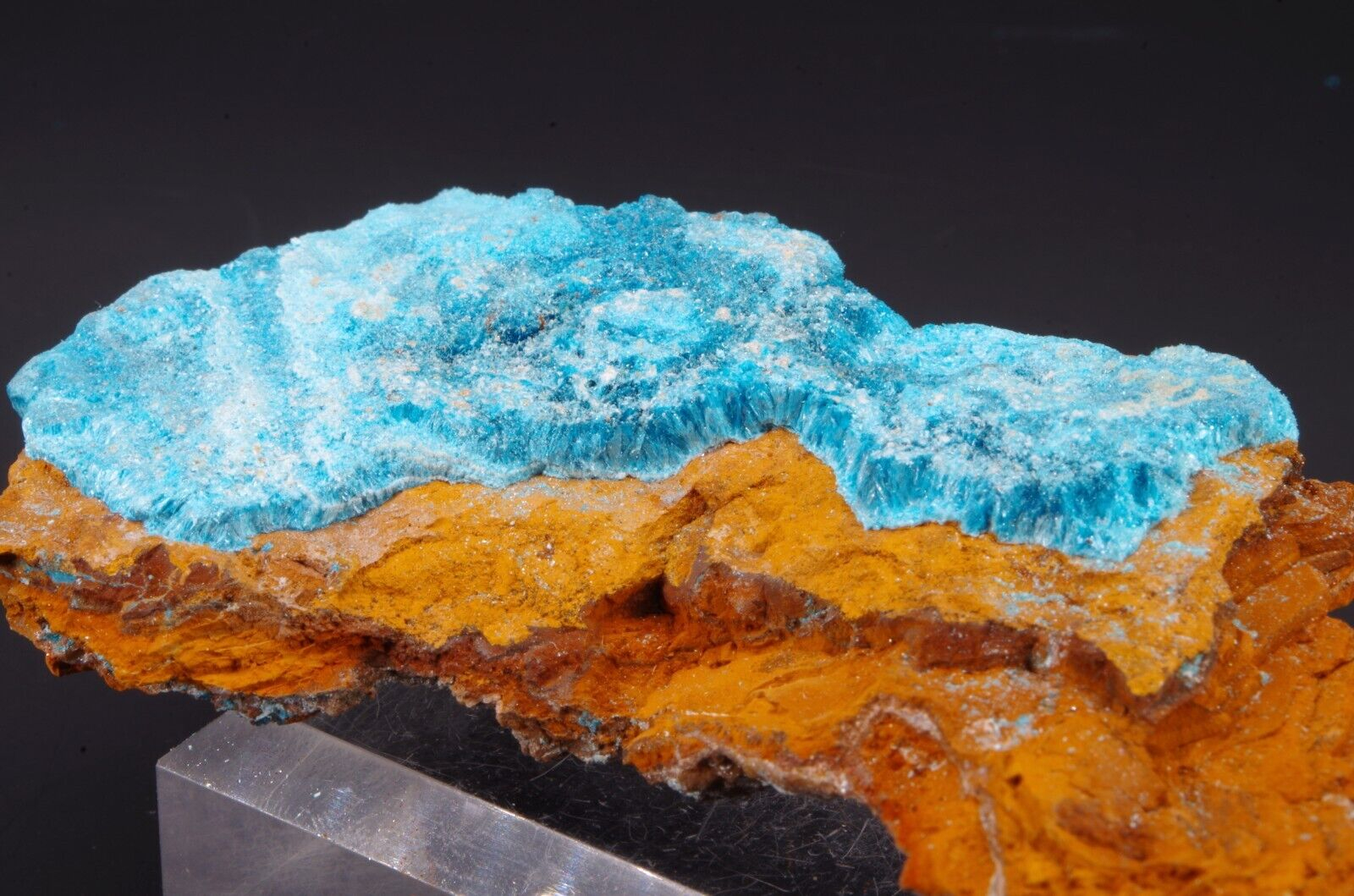 Minéral sulfate hydraté rare de couleur bleu ciel, que l’on trouve souvent comme produit post-exploitation.