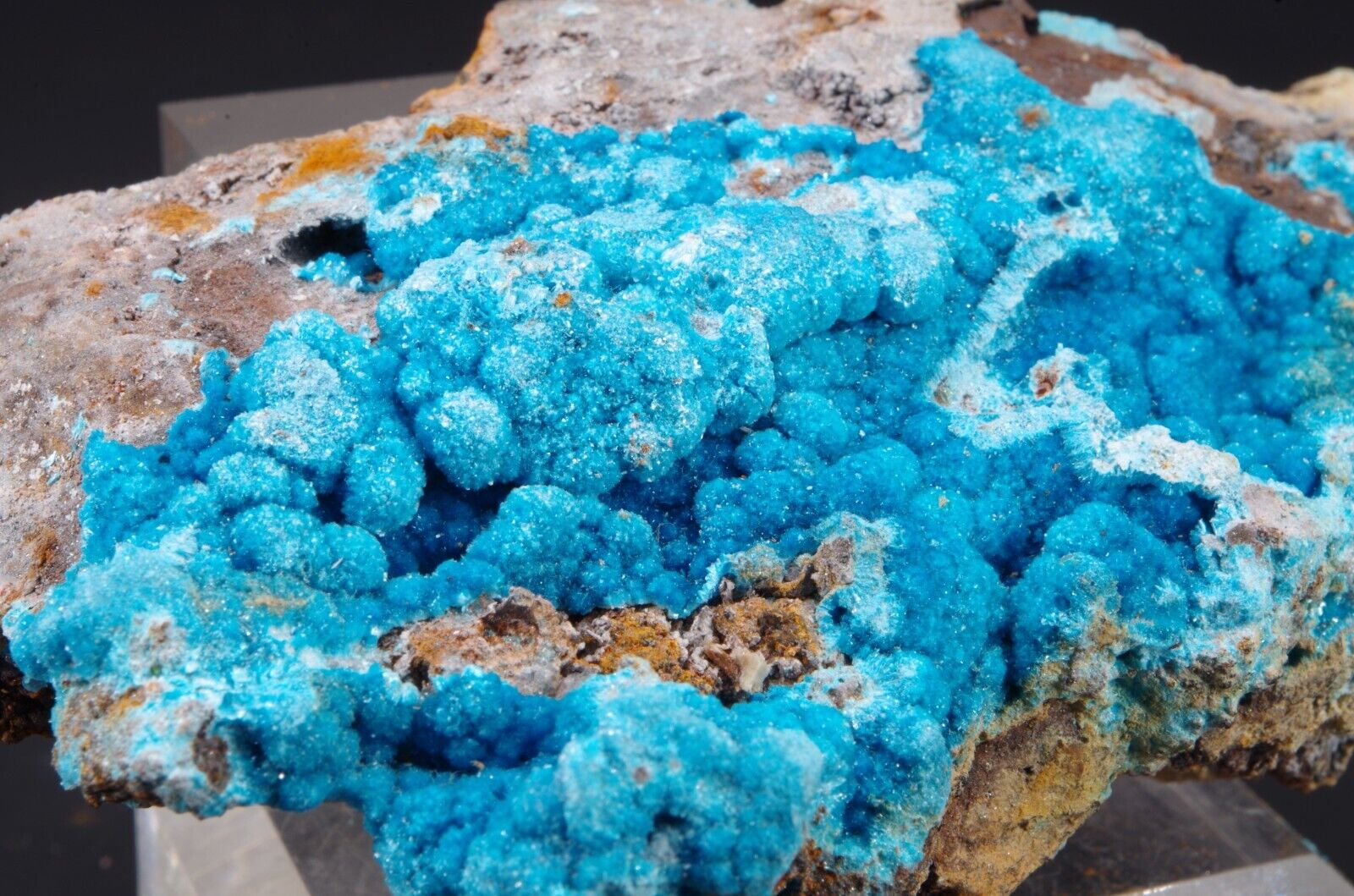 Minéral sulfate hydraté rare de couleur bleu ciel, que l’on trouve souvent comme produit post-exploitation.