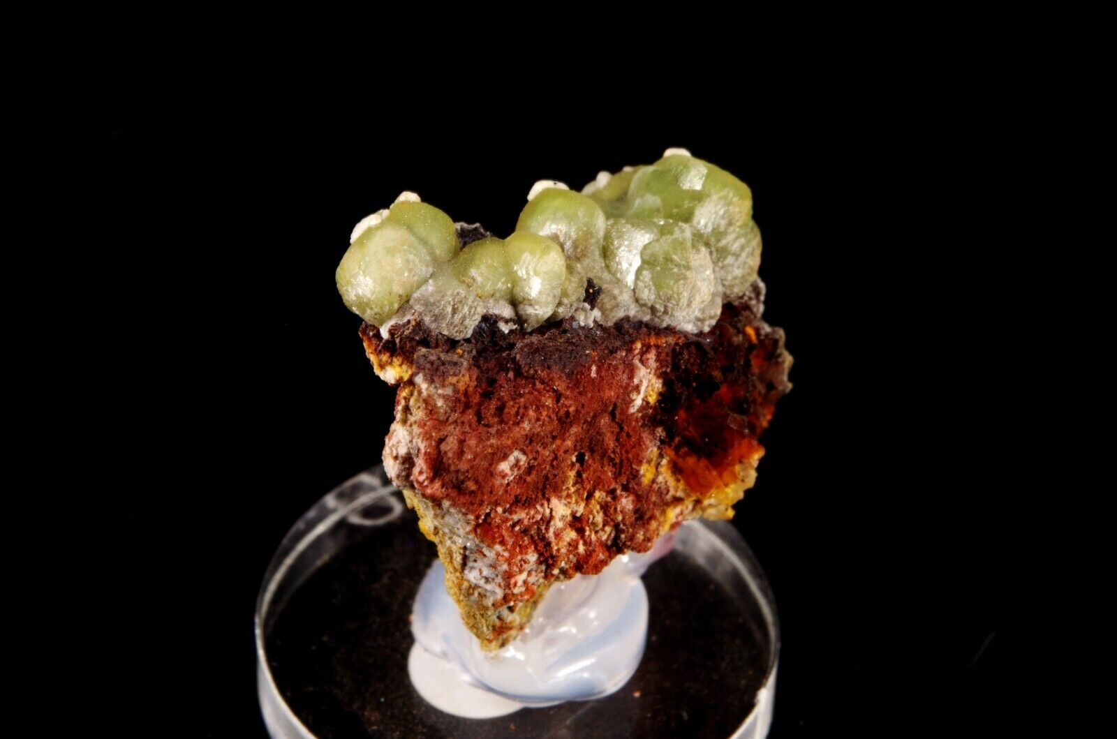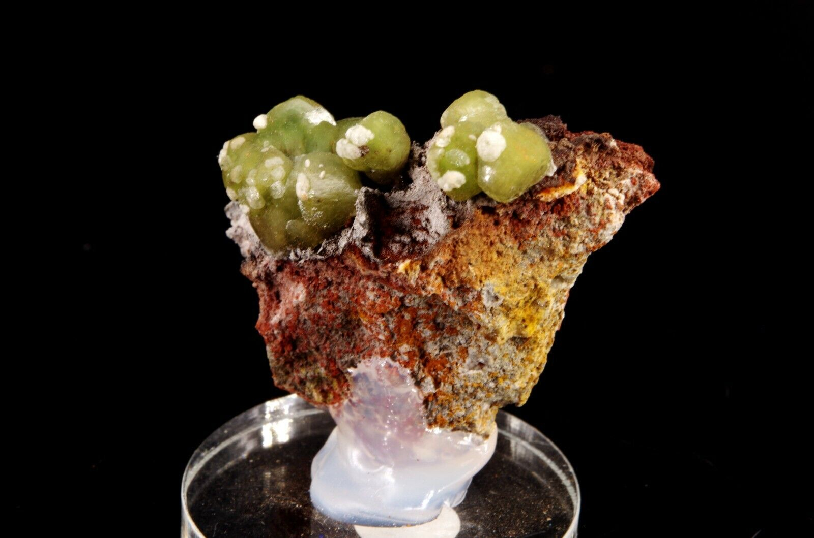 Cupro-Smithsonite d’aspect botryoïdal piquetés de Calcite