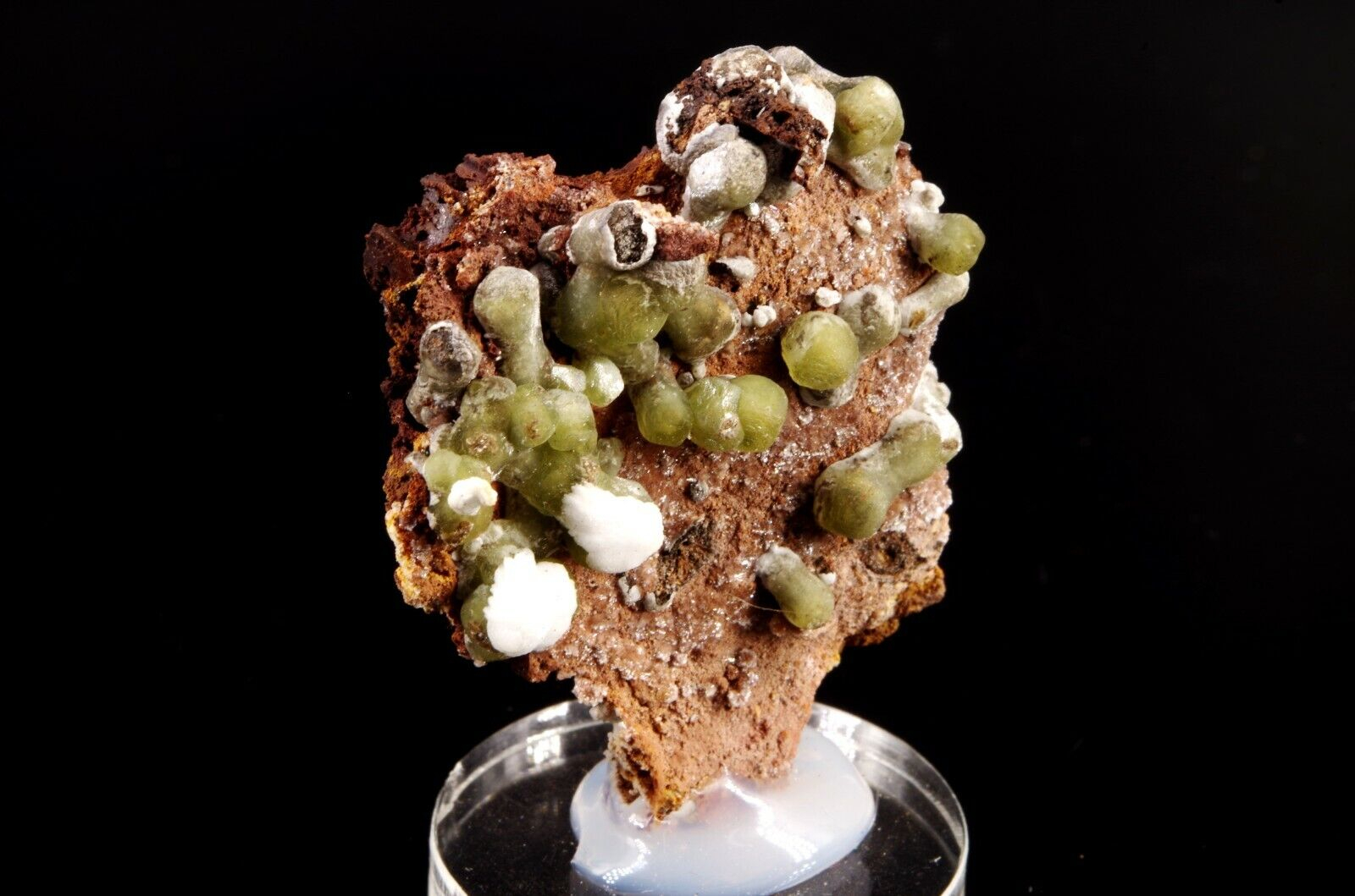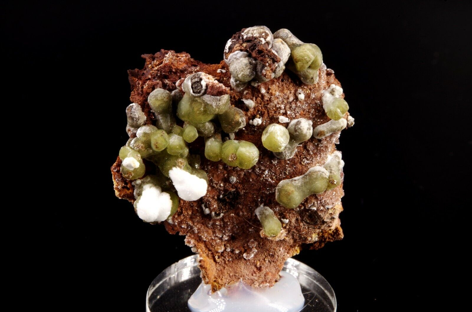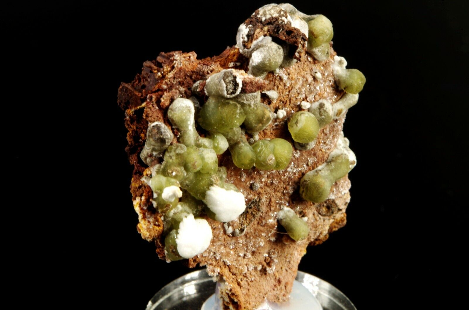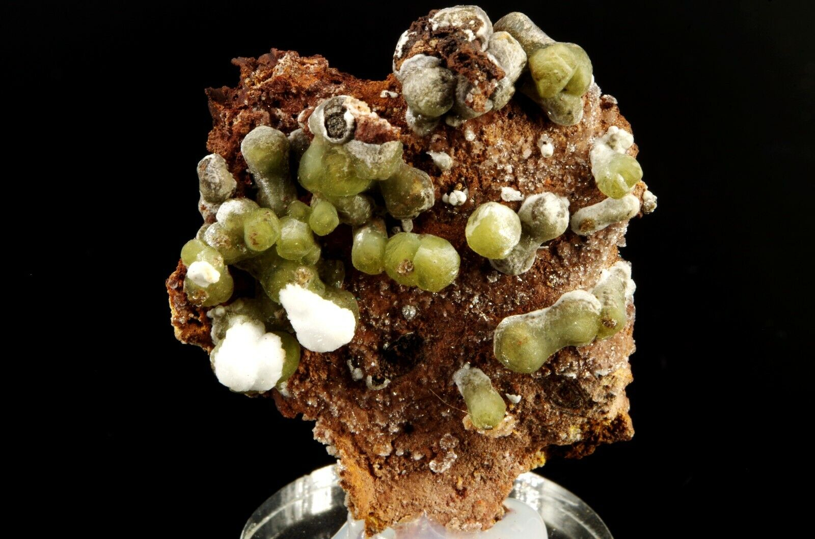 Cupro-Smithsonite d’aspect botryoïdal recouverte de 2 formation de calcite blanche