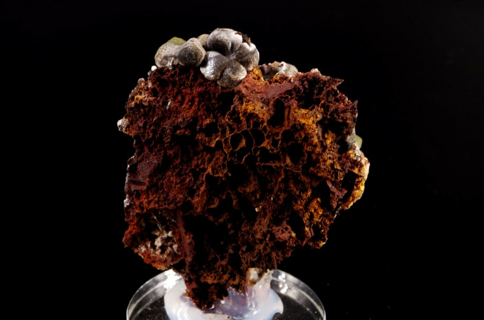 Sur la matrice de Gossan, présence de micro formations d’Hémimorphite donnant un aspect brillant