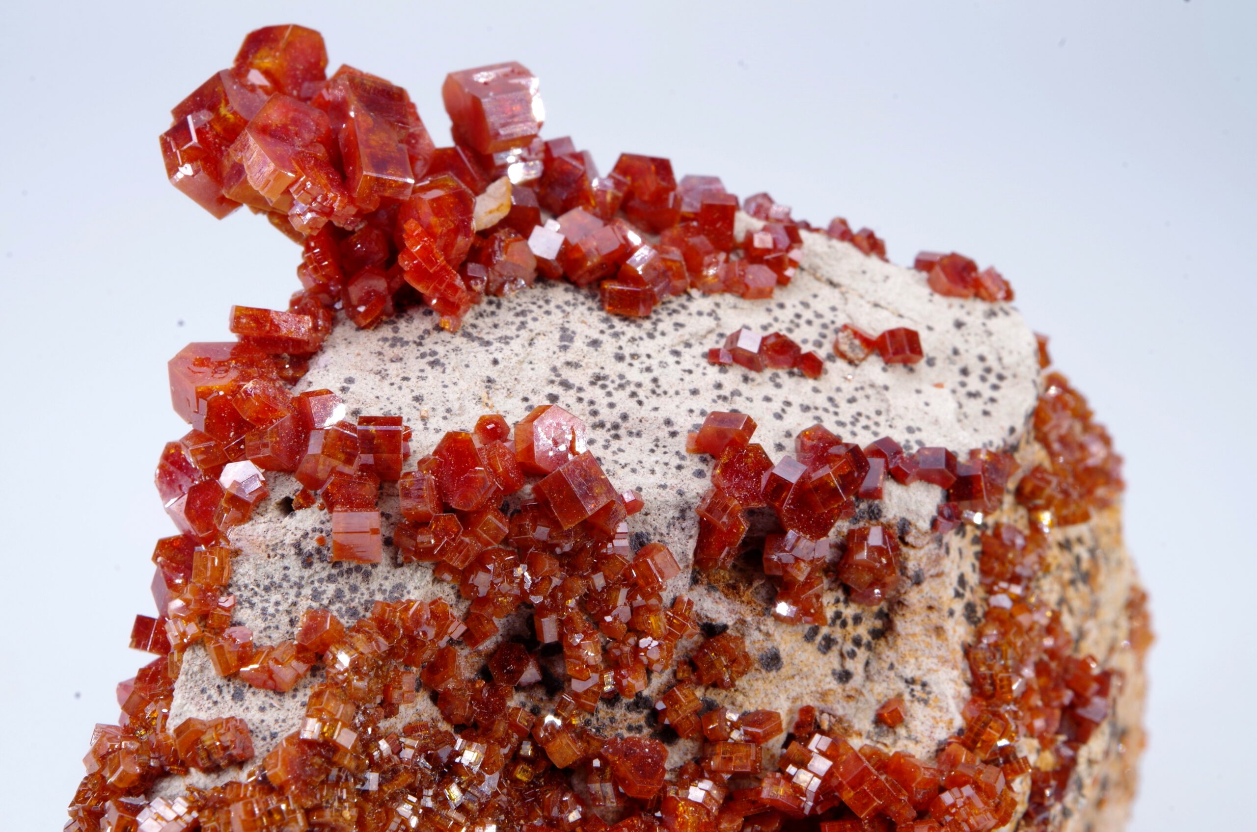 Excellente cristallisation de Vanadinite sur gangue.