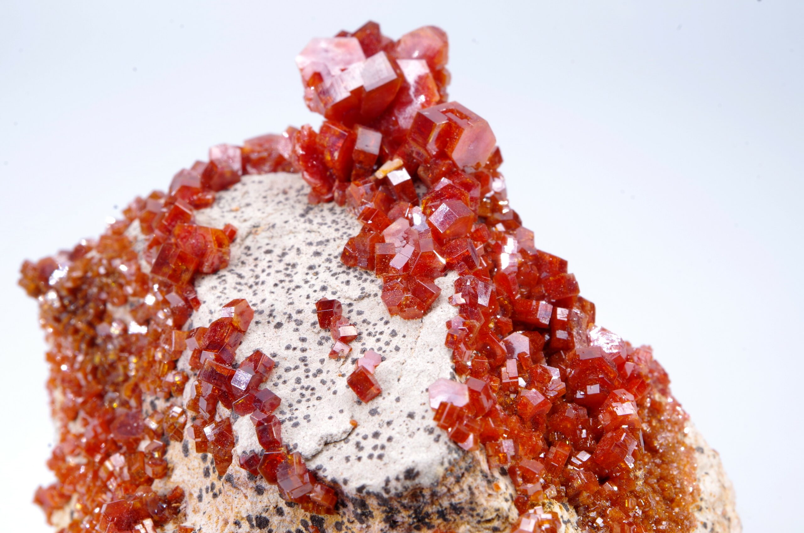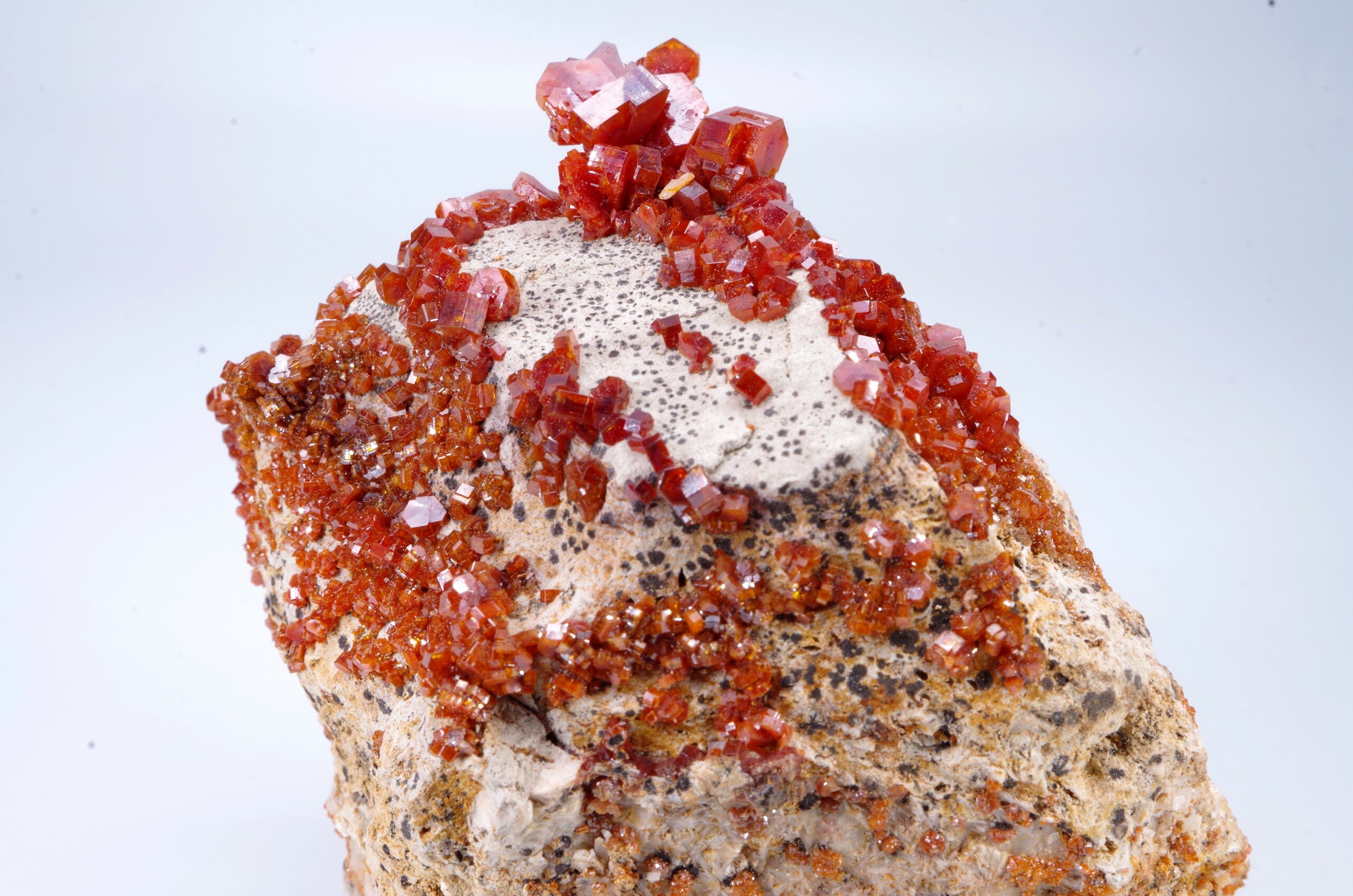 Excellente cristallisation de Vanadinite sur gangue.