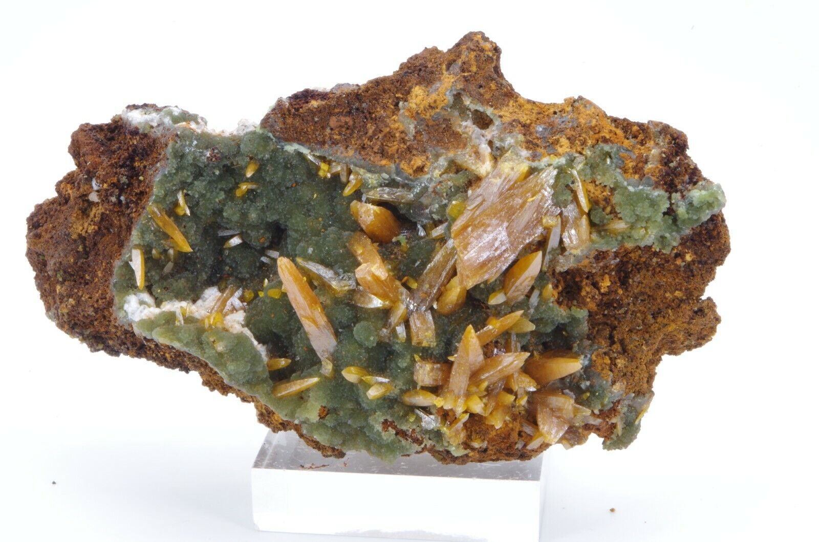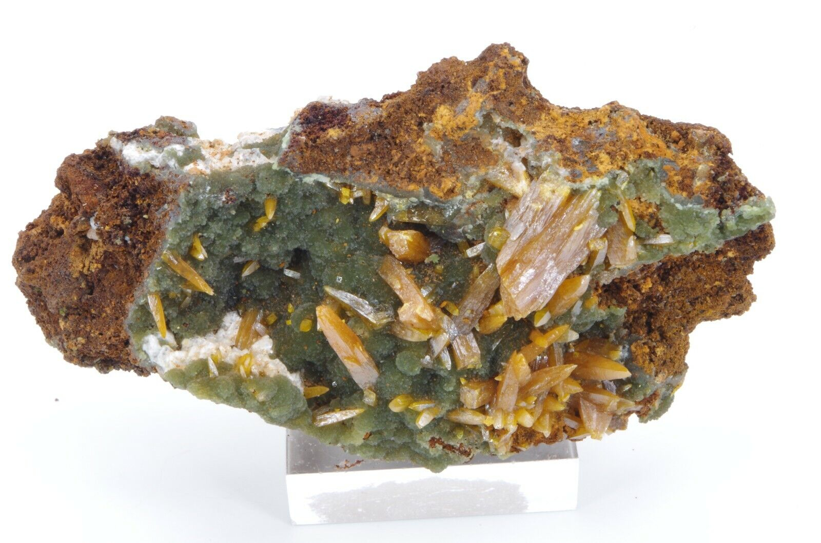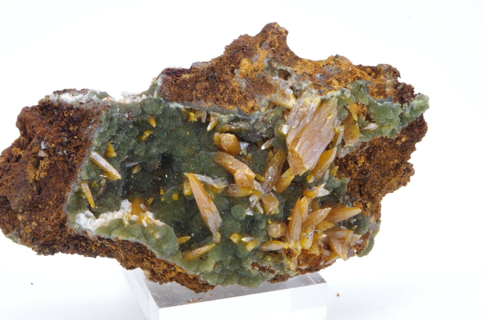 Wulfenite et mimetite 7.5×4.5cm 70gr level6 san juan poniente vein la ojuela mapimi Mexique