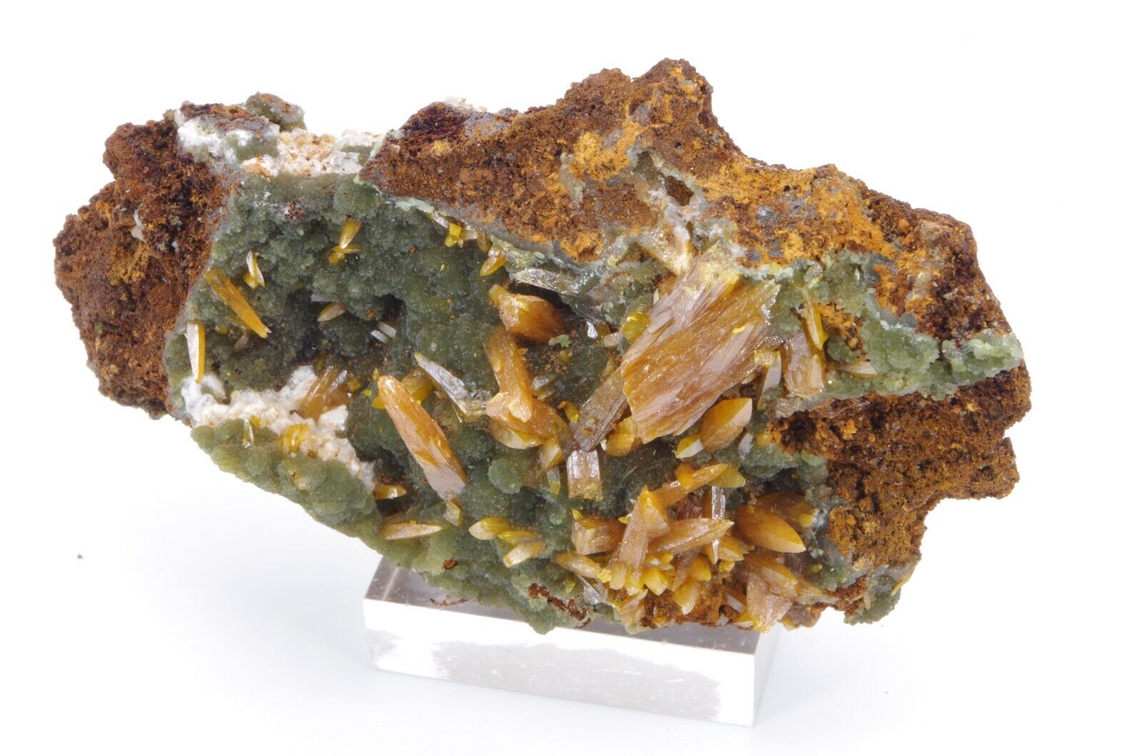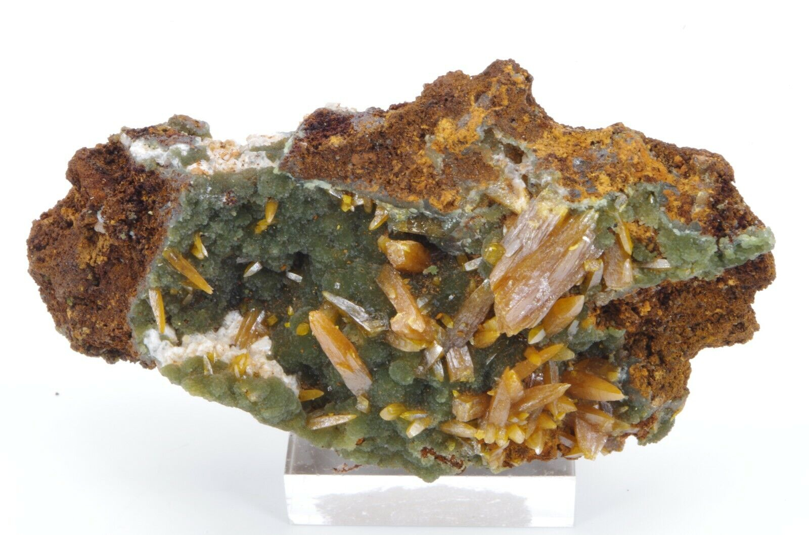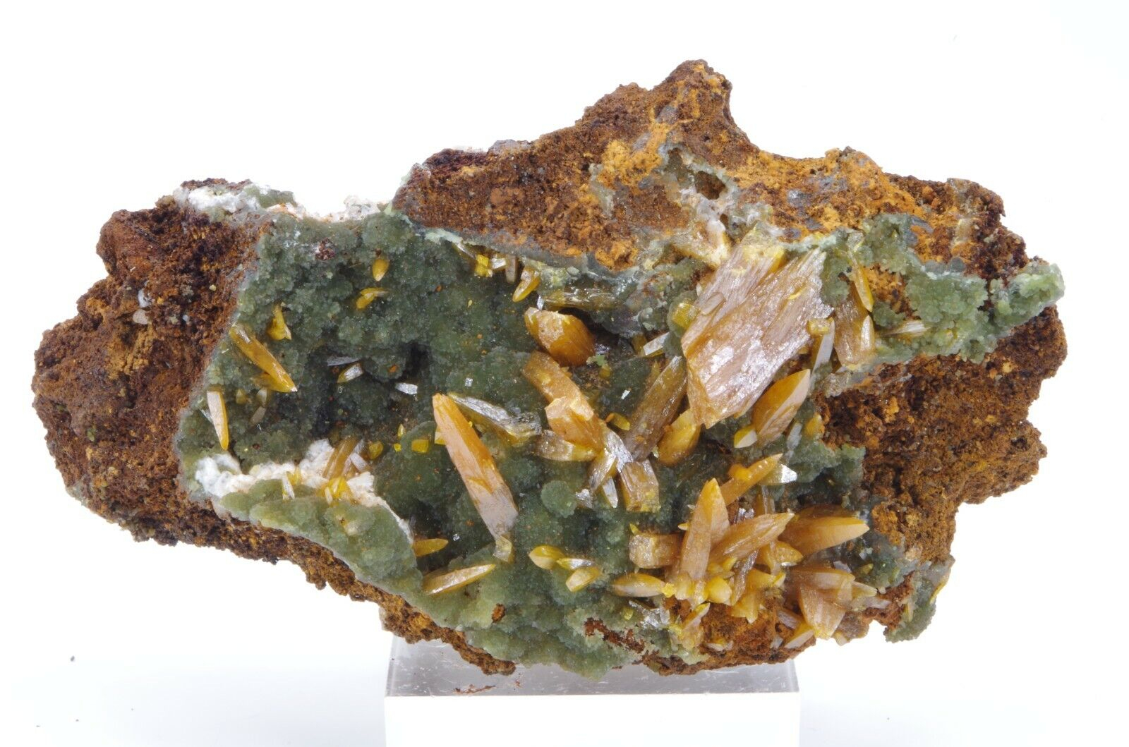 Wulfenite et mimetite 7.5×4.5cm 70gr level6 san juan poniente vein la ojuela mapimi Mexique